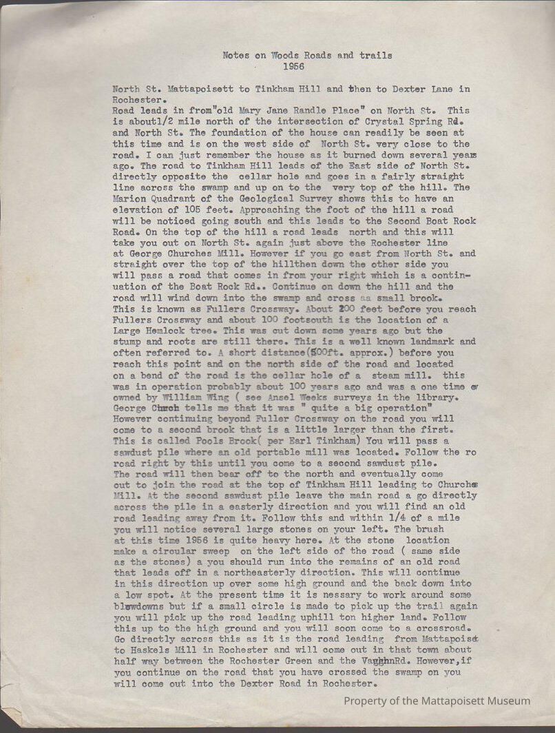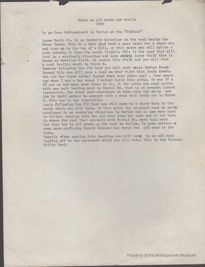 Notes on old roads and trails, 1956Collection