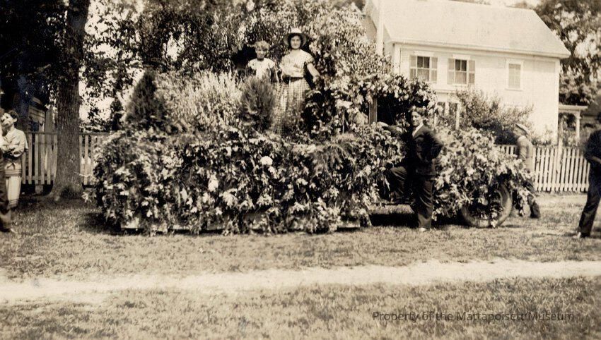 B&W photograph of celebrations in Mattapoisett. Precise date and event is unclear. Figueriedo float.Collection