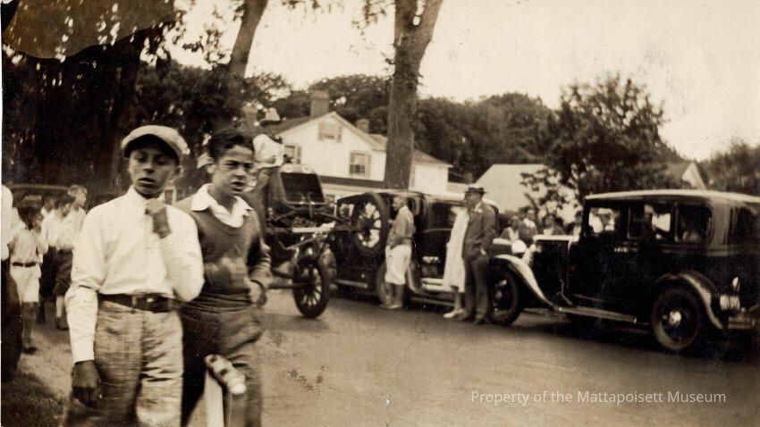 B&W photograph of celebrations in Mattapoisett. Precise date and event is unclear.Collection