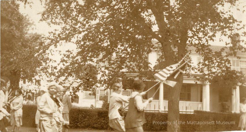 B&W photograph of celebrations in Mattapoisett. Precise date and event is unclear.Collection