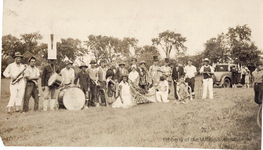B&W photograph of celebrations in Mattapoisett. Precise date and event is unclear.Collection