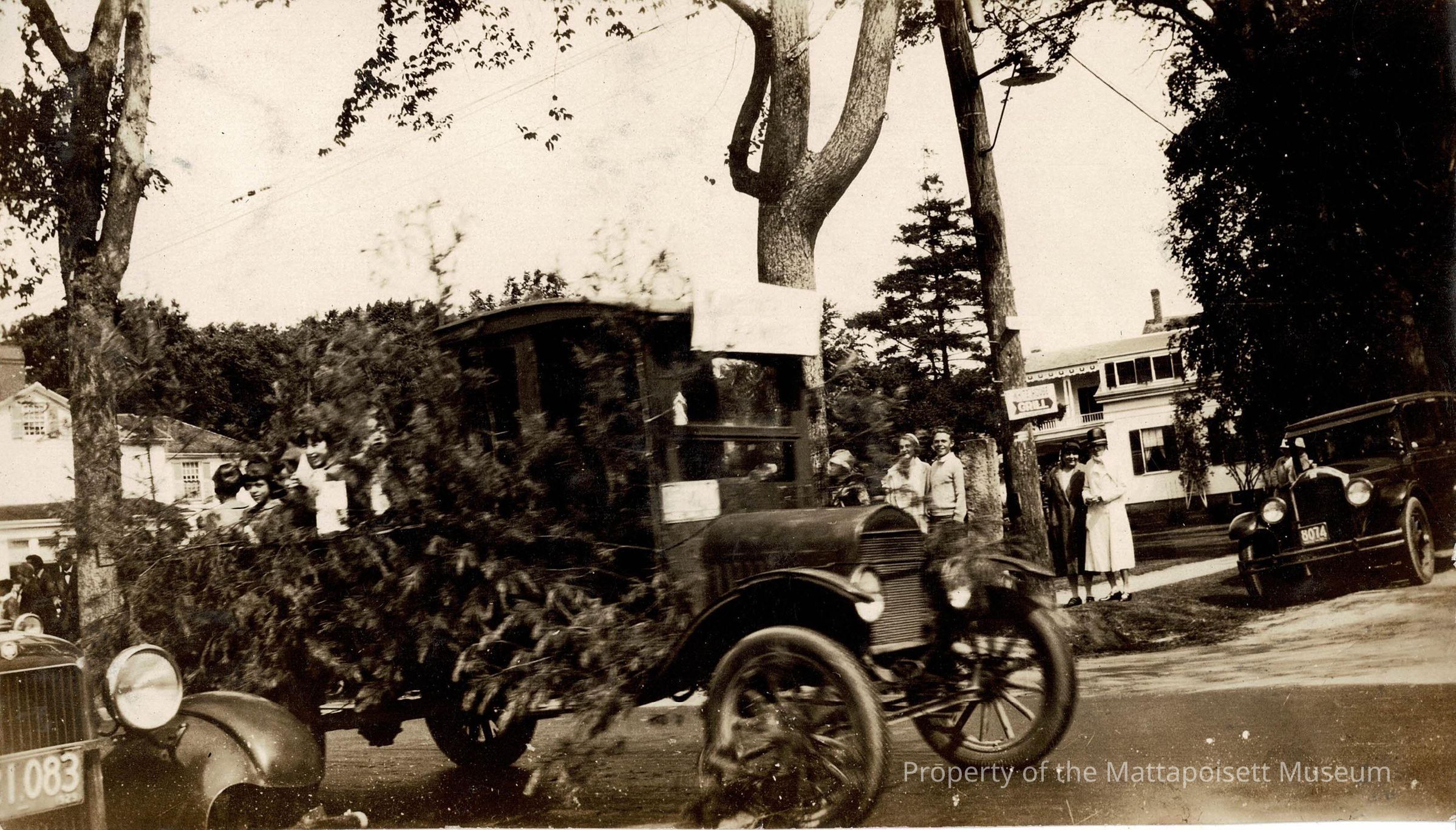 B&W photograph of celebrations in Mattapoisett. Precise date and event is unclear.Collection