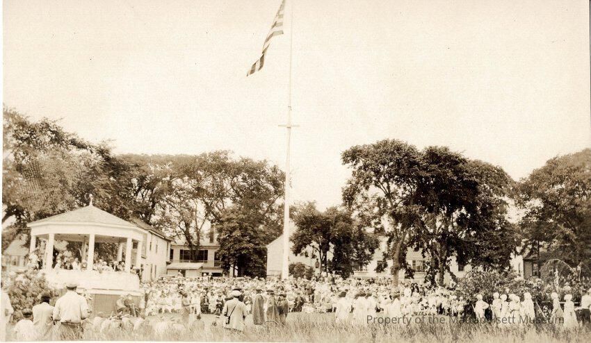 B&W photograph of celebrations in Mattapoisett. Probabably 75th anniversary in 1932.Collection