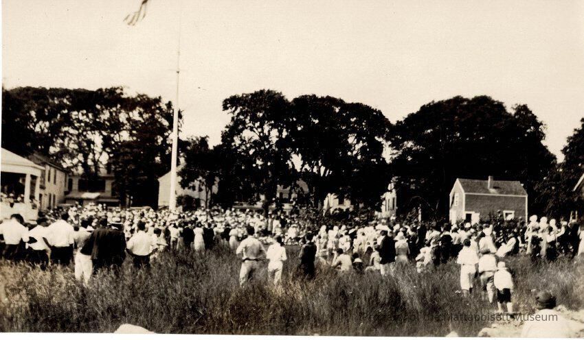 B&W photograph of celebrations in Mattapoisett. Probabably 75th anniversary in 1932.Collection