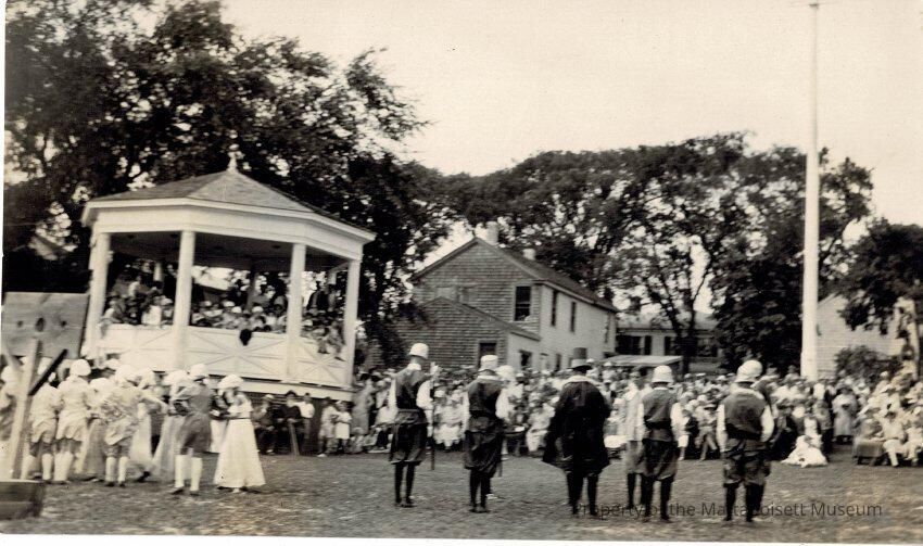 B&W photograph of celebrations in Mattapoisett. Probabably 75th anniversary in 1932.Collection