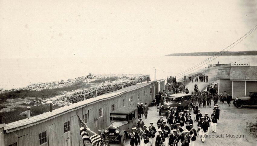 B&W photograph of celebrations in Mattapoisett. Precise date and event is unclear.Collection