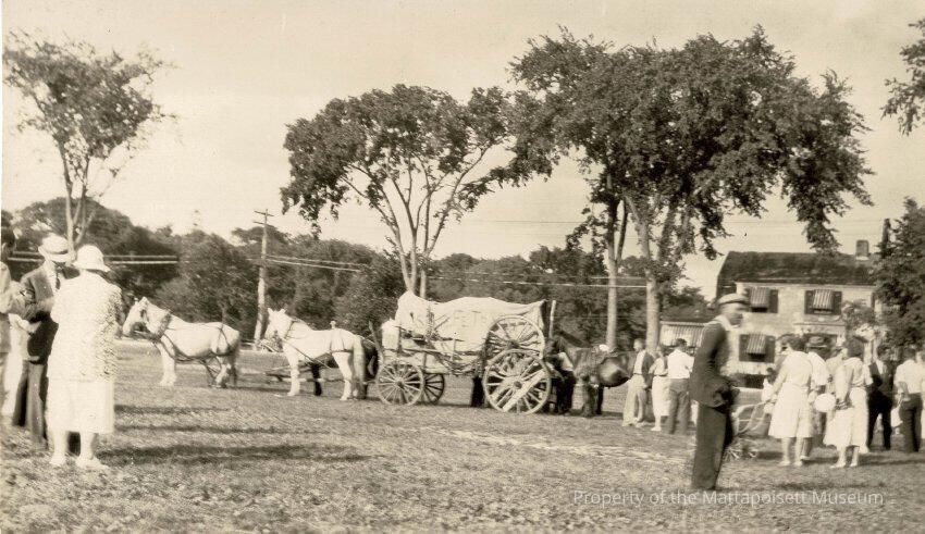 B&W photograph of celebrations in Mattapoisett. "Sautet's Trail" (?), Aug 13, 1952. Judges G. Harrington, C. [blank], and F. Blake.Collection