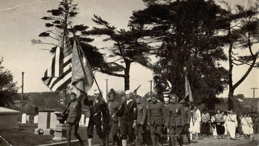 B&W photograph of celebrations in Mattapoisett. Precise date and event is unclear.Collection