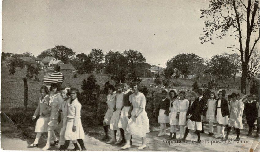 B&W photograph of celebrations in Mattapoisett. Precise date and event is unclear.Collection