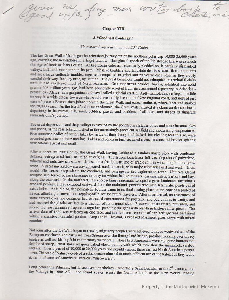 Chapter VIII, A "Goodliest Continent". Given use by man writing book to check over good info.Collection