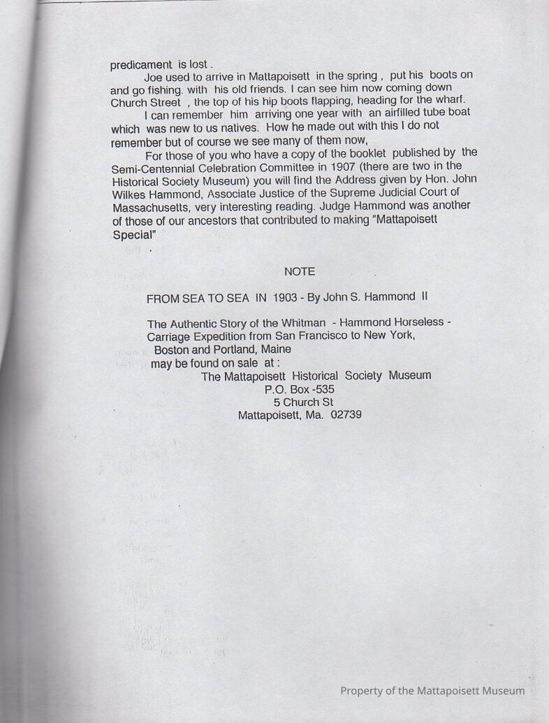 "From Sea to Sea in 1903" by John S. Hammond II, The Authentic Story of the Whitman, Hammond Horseless, Carriage Expedition from San Francisco to New York, Boston and Portland, Maine.Collection
