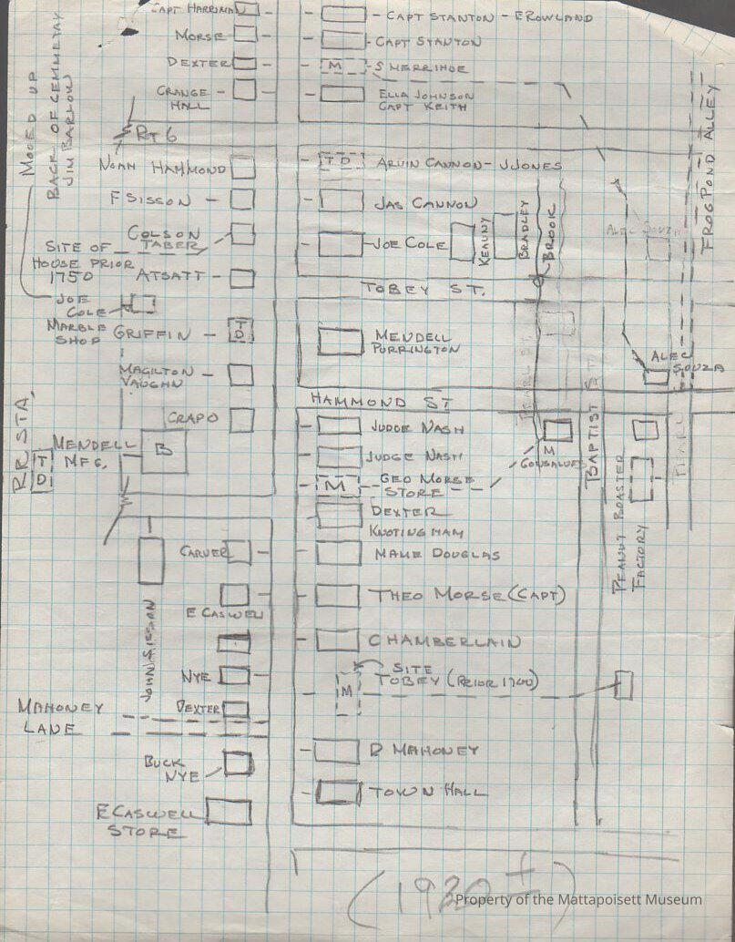 Handdrawn grid of Main Street to Church Street, Mattapoisett. c. 1920.Collection