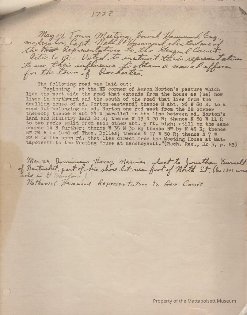 Notes from 1787, town votes, road layout, mariner (2 pages).Collection