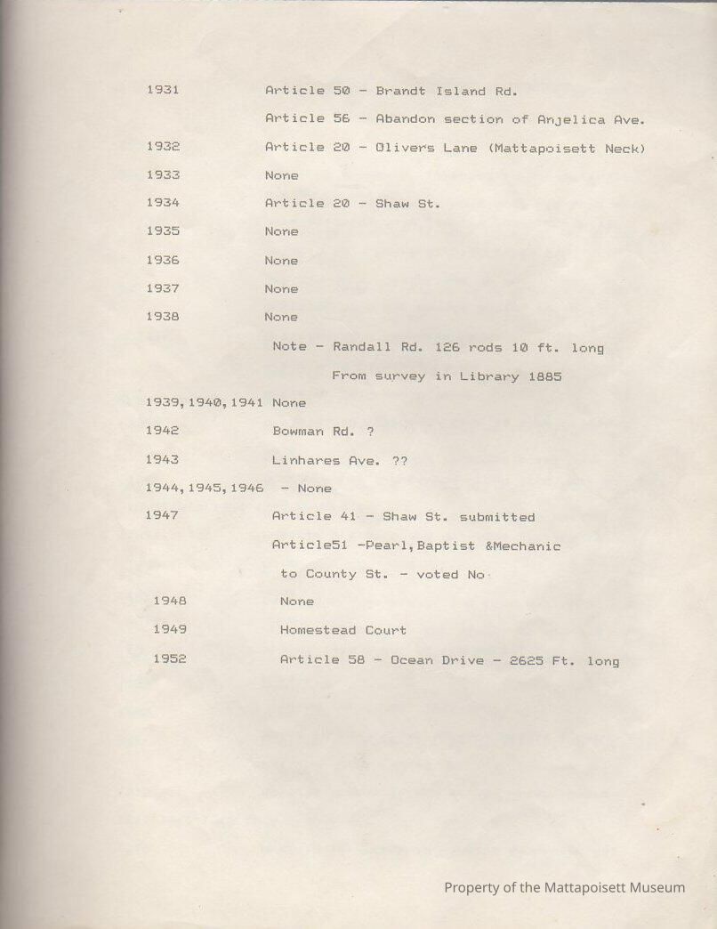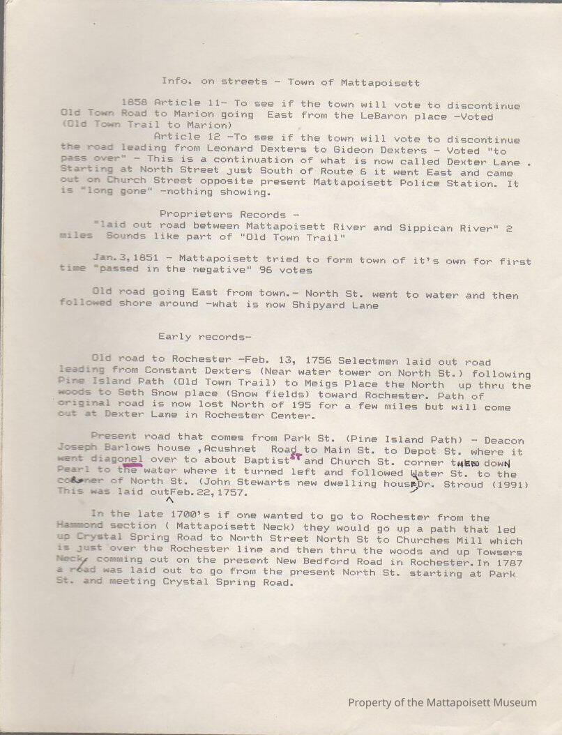 Information on streets in the Town of MattapoisettCollection