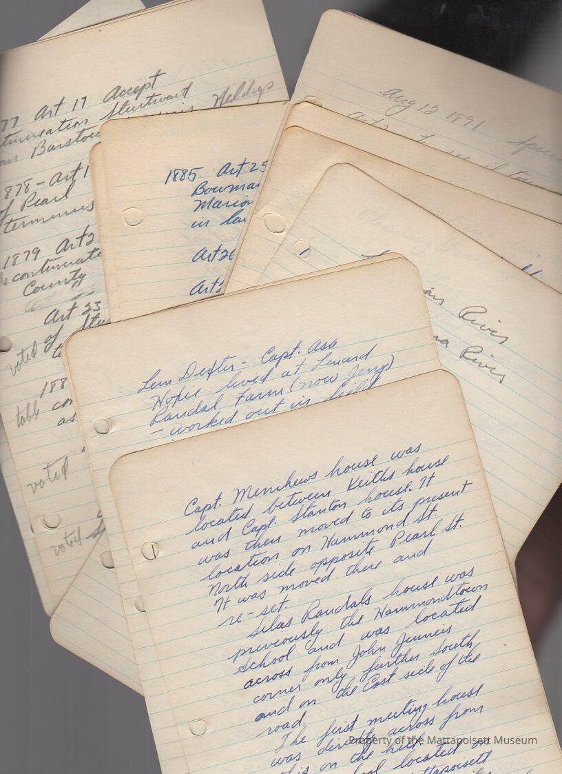 Notes on history of various areas and people around Mattapoisett.Collection