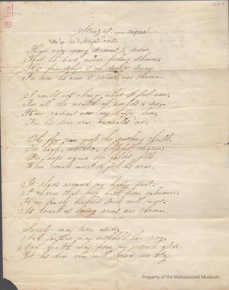 Stanzas, original. Written for the Mattapoisett Gazette. by SarahCollection