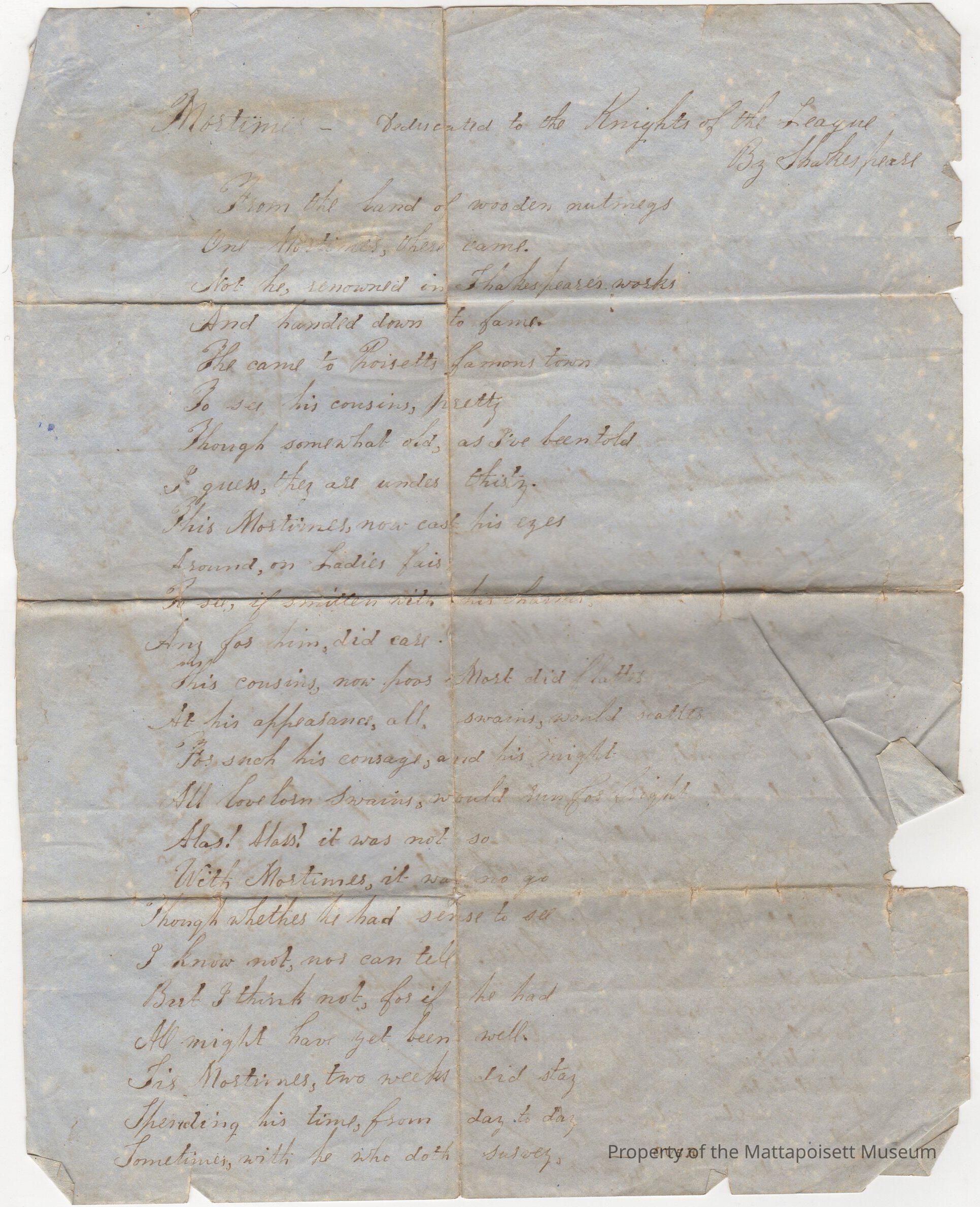 "Mortimer" dedicated to the Knights of the League by Shakespeare. Noah Hammond.Collection