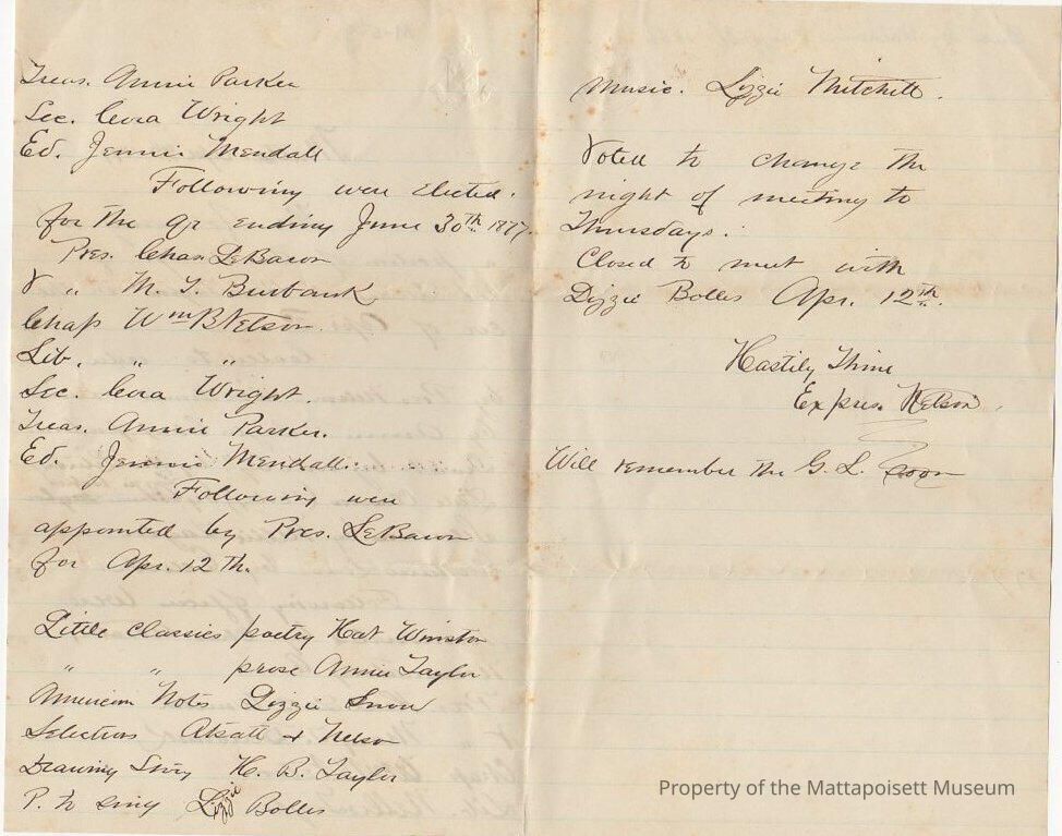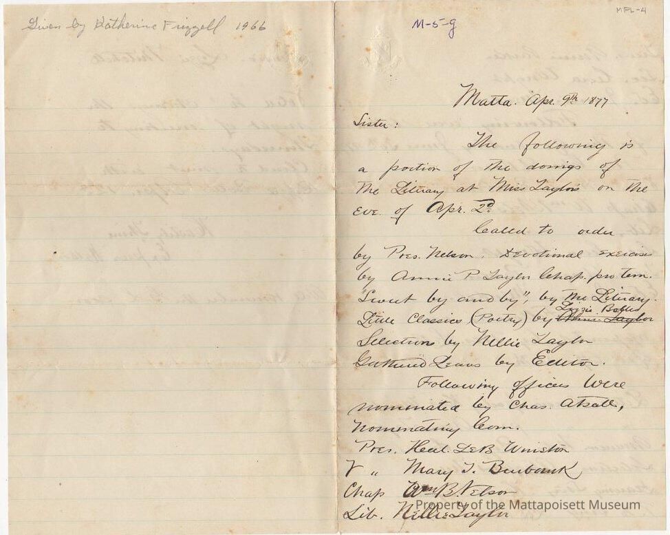 Meeting minutes of "a portion of the doings of the literary [club] at Miss Taylor's"Collection