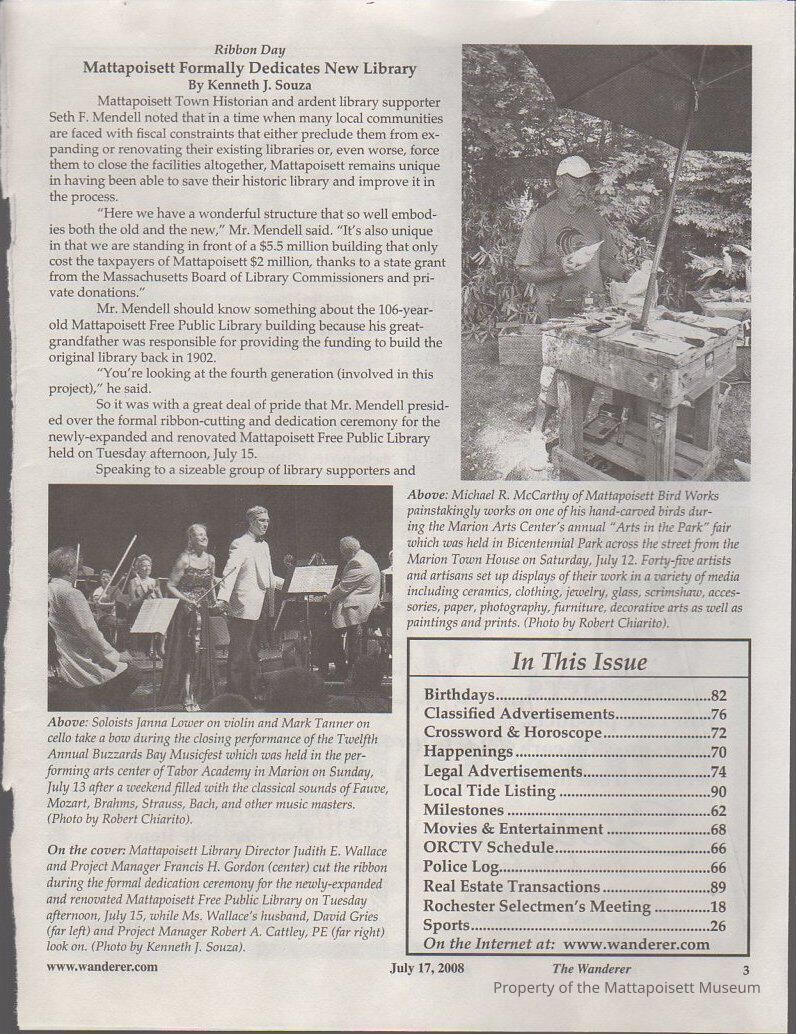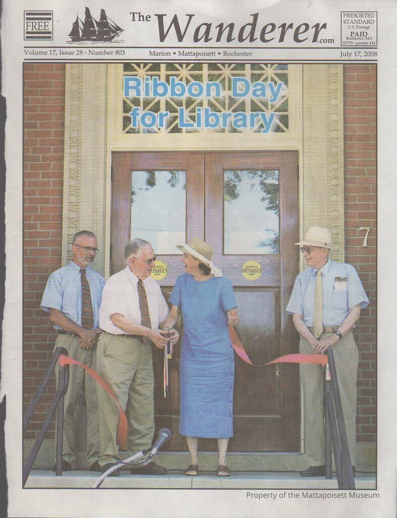 The Wanderer, Vo. 14, Issue 29, No. 803, article "Ribbon day, Mattapoisett Formally Dedicates New Library".Collection