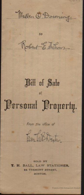 Bill of Sale between Mellen O. Downing to Robert E. Achom.Collection