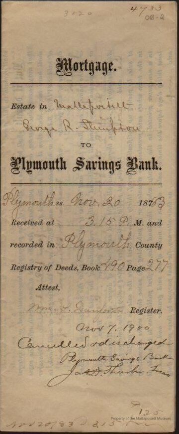 Mortgage deed from George R. Stimpson to Plymouth Savings Bank. Canceled and discharged Nov. 7, 1900Collection