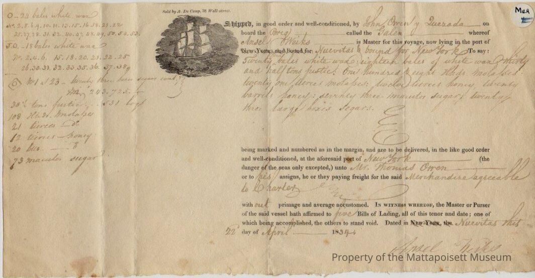 Delivery order for Barq Galen, Ansel Weeks, master, bound for New York.Collection
