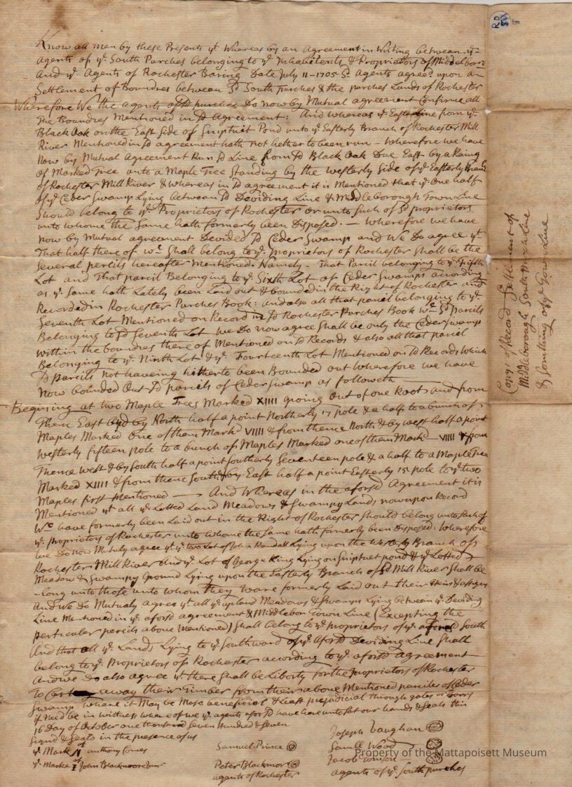 Copy of a record of Settlement of Middleborough south parcel line and [something] of the Gown line.Collection