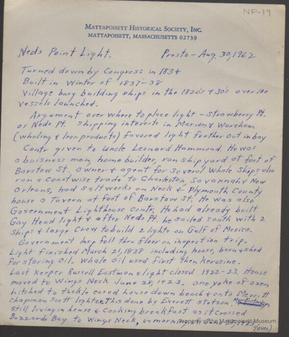 History of Ned's Point Light from Presto Press, August 30, 1962Collection