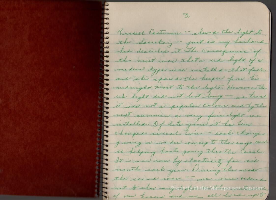 Notebook with notes about lighthouse. Starts on page 3.Collection