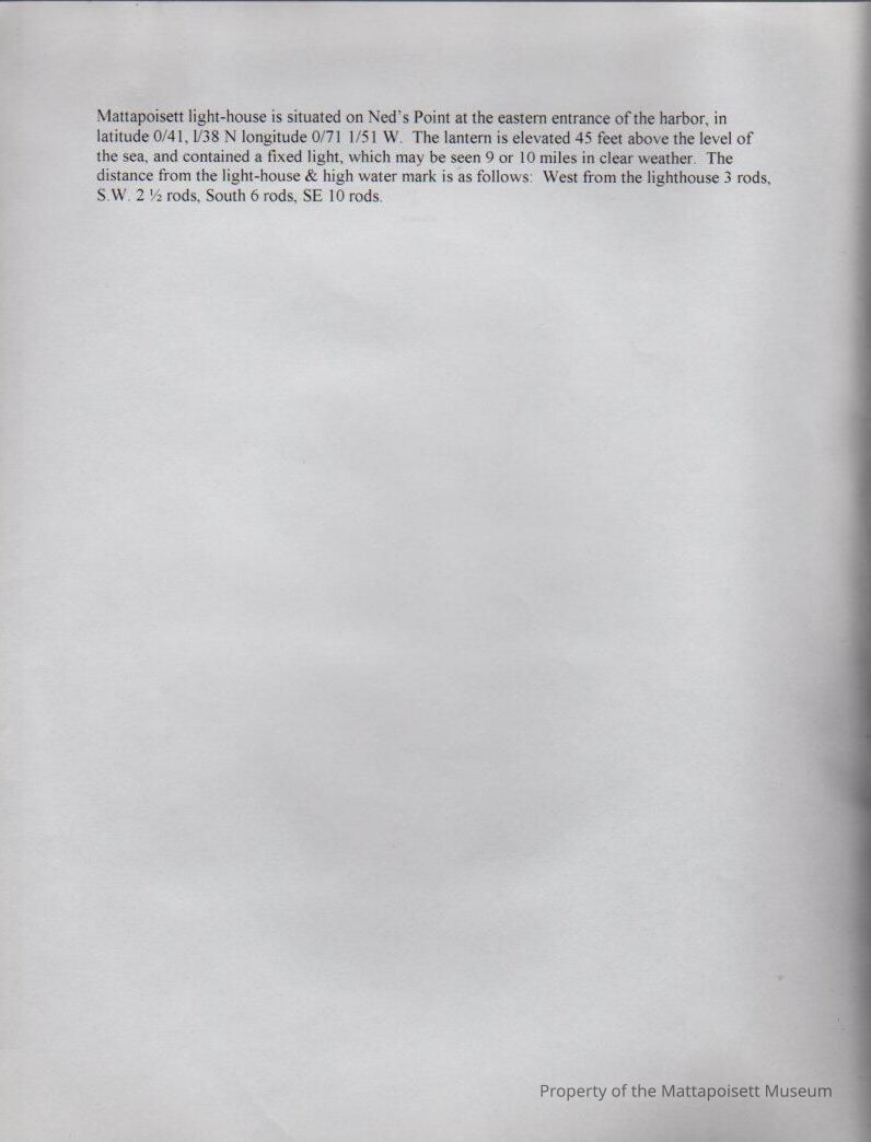 Detailed description of Ned's Point Lighthouse. Transcription of .409Collection