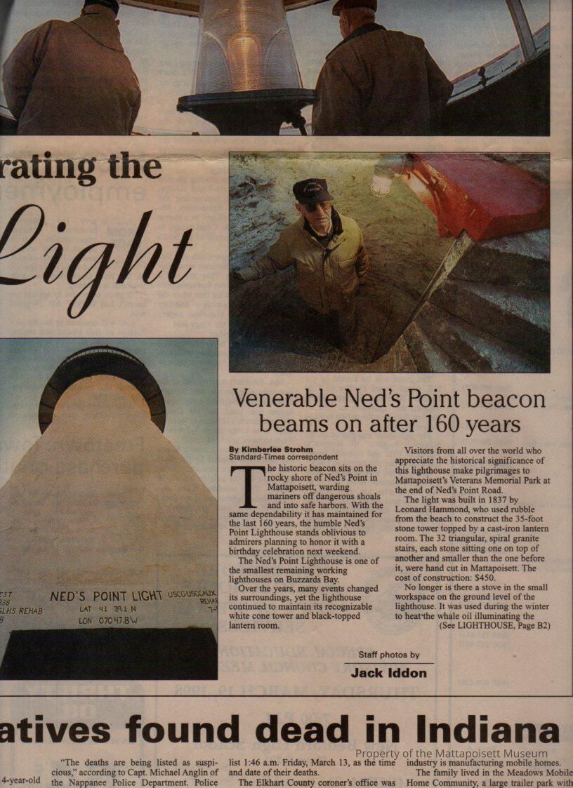 Standard-Times newspaper article "Celebrating the Light" Venerable Ned's Point beacon beams on after 160 years.Collection