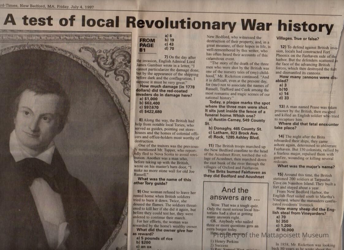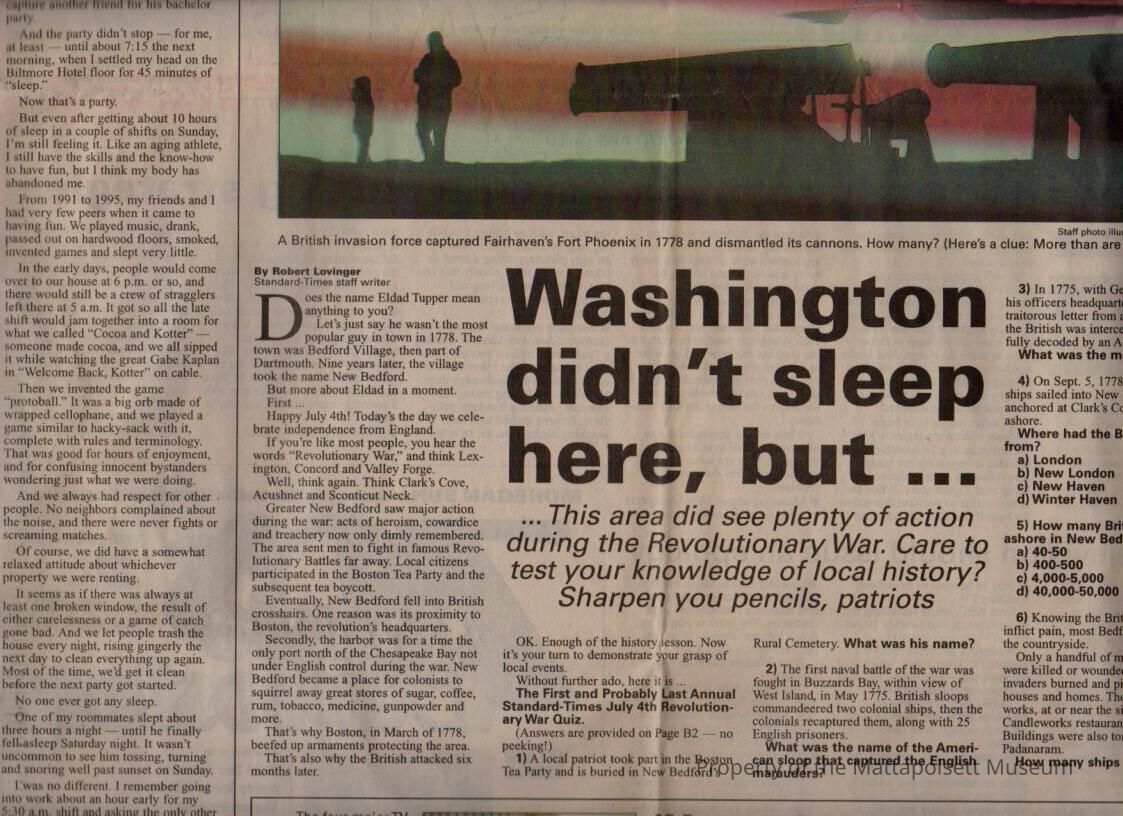 Standard-Times article "Washington didn't sleep here, but..." A test of local Revolutionary War history.Collection