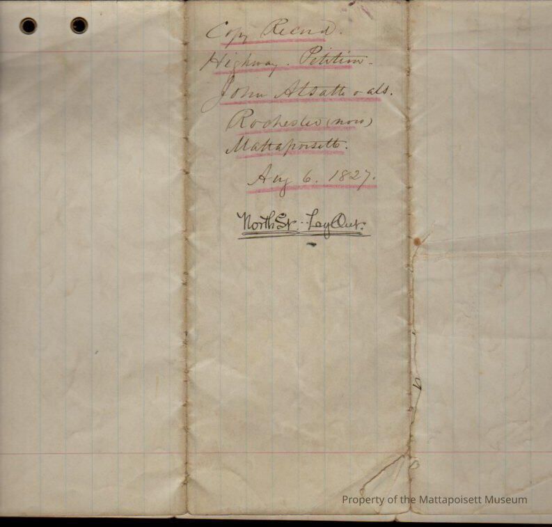 Highway petition of John Atsatt and others to "widen and straigten" the "crooked and narrow" road from the Village of Mattapoisett to Rochester Town.Collection