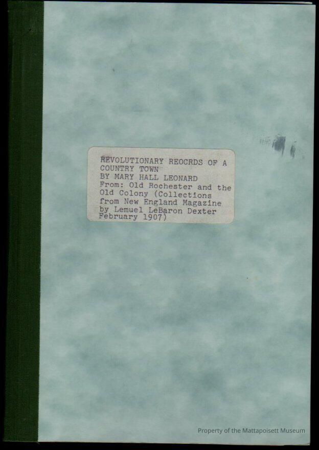 Revolutionary Records of a Country Town by Mary Hall Leonard. From: Old Rochester and the Old Colony (Collections from New England Magazine by Lemuel LeBaron Dexter, February 1907)Collection