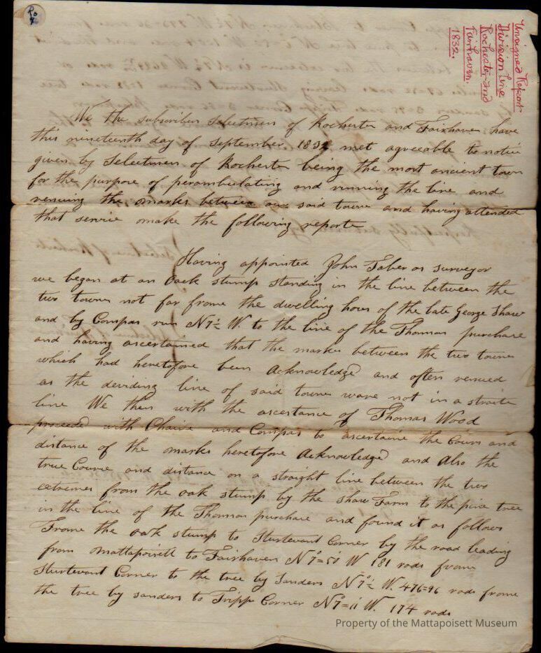 Unsigned Report, Division line between Rochester and Fairhaven, 1832Collection