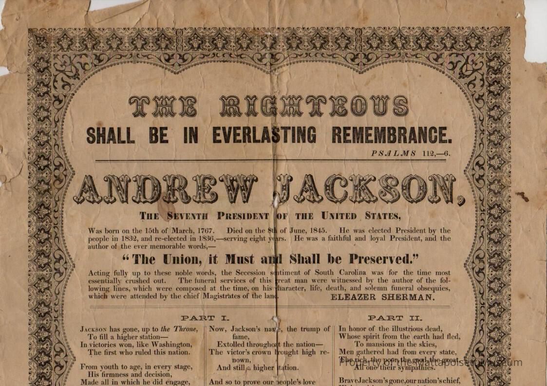 Poster "The Righteous shall be in everlasting rememberance" Andrew Jackson, the seventh president of the United States.Collection