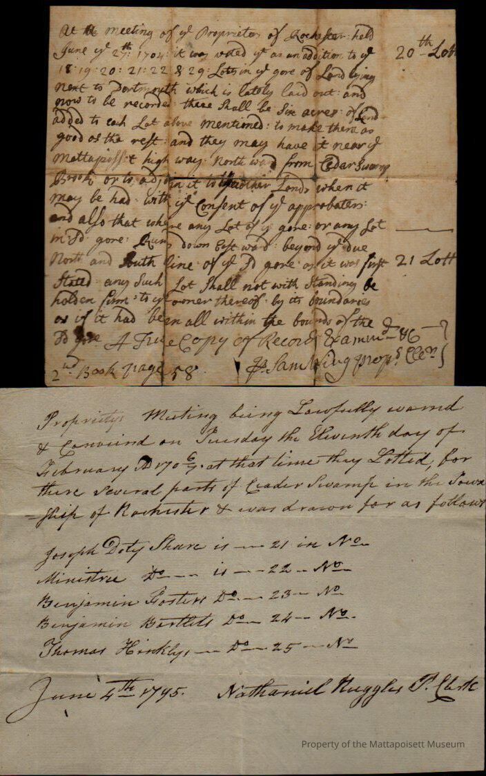 Propriters Meeting called to "lot" several part of Cedar Swamp in the Township of Rochester.Collection