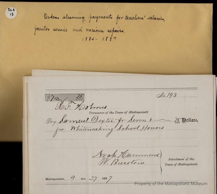 Orders showing payments for teachers' salaries, janitor service and various repairs.Collection