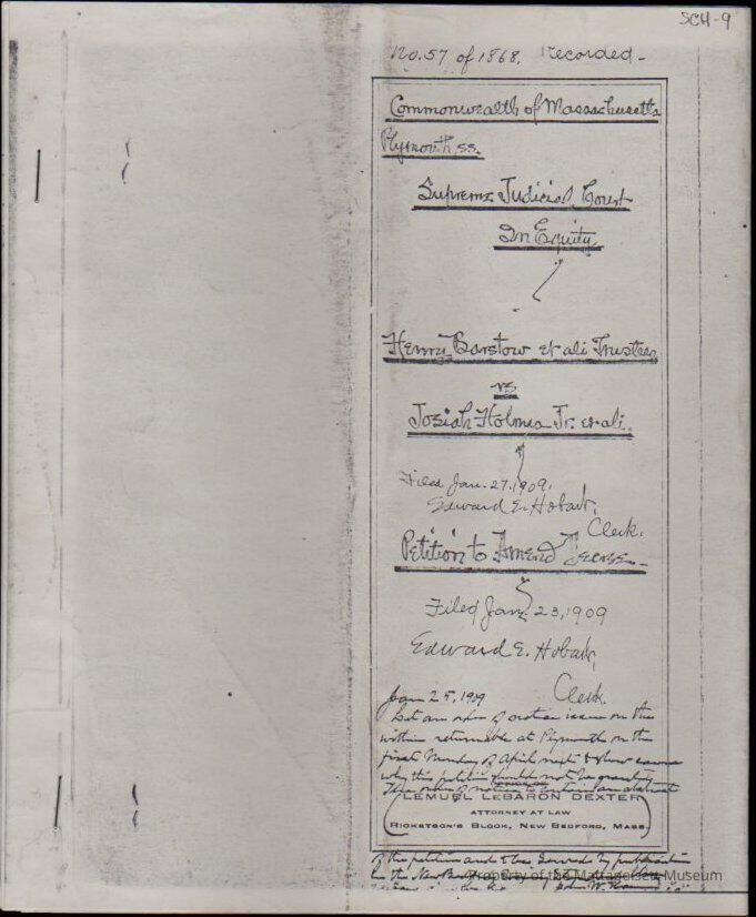 Supreme Judicial Court in equity, Henry Barstow et al, trustees vs. Josiah Holmes Jr. et al. Petition to amend decree.Collection