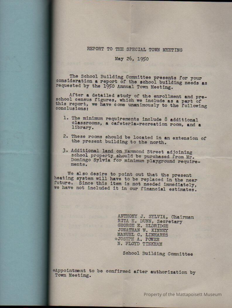 Old Rochester Regional High School, Hammondtown, Mattapoisett Center SchoolArchive Details