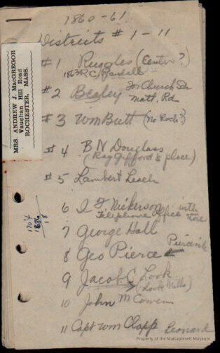 1860-1861 names of Districts #1-11Collection