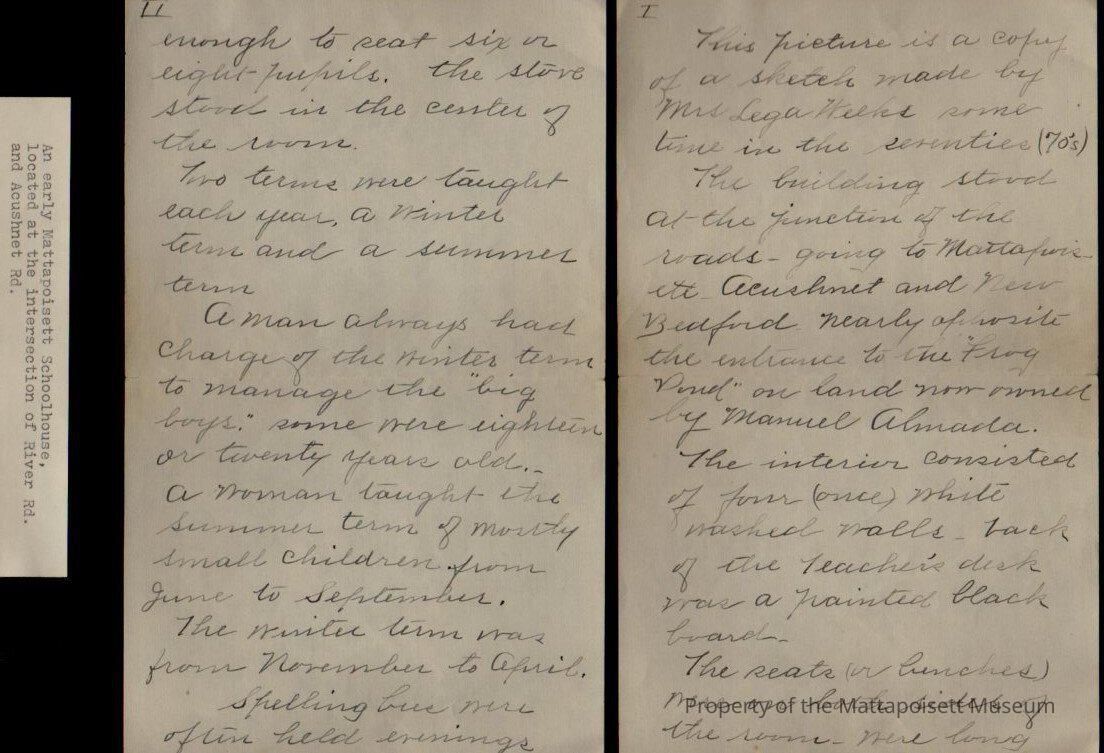 Description of picture (copy) of a sketch made by Mrs. Lega-Weeks [Lega-Weekes], at the junction of roads going to Mattapoisett, Acushnet and New Bedford. (see pictures)Collection