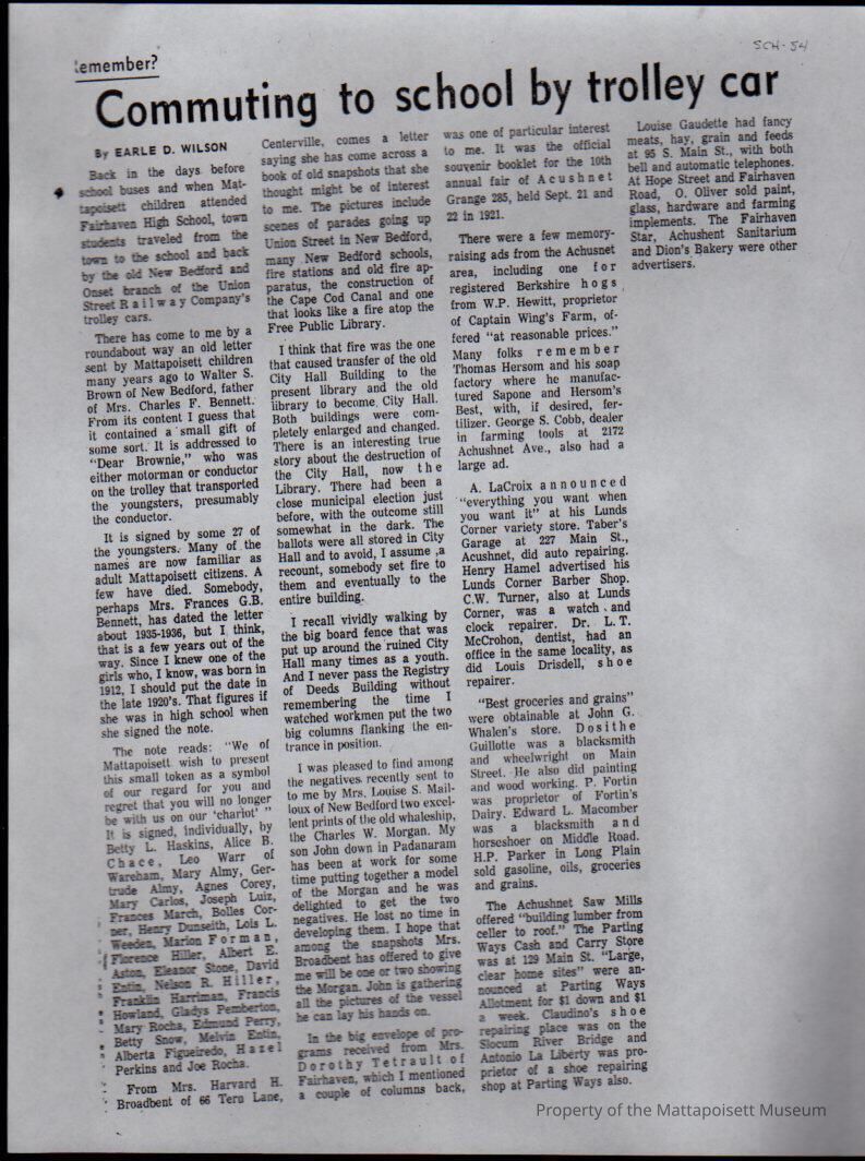 Newspaper article (copy) "Commuting to School by Trolley Car"Collection