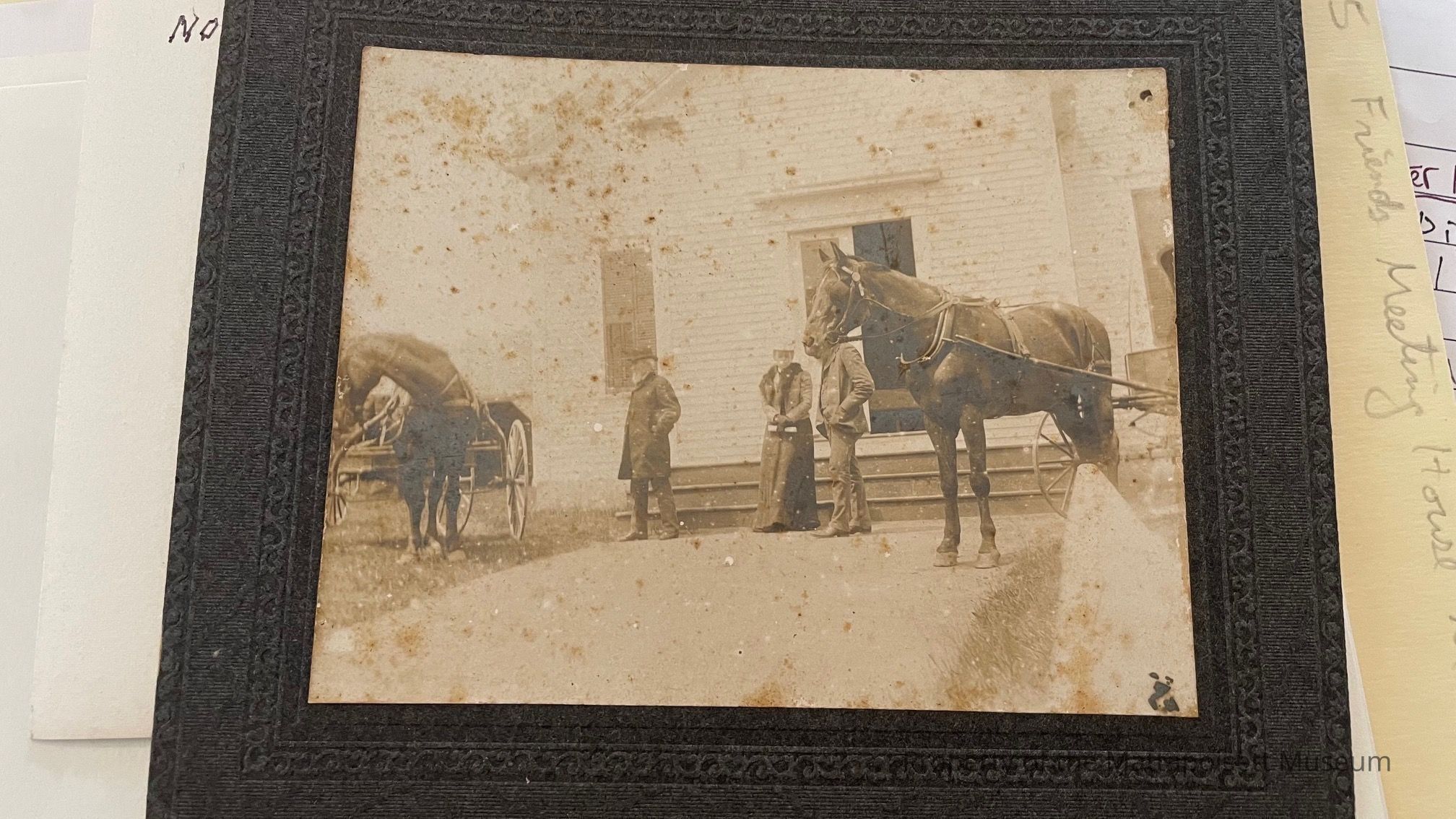 Photograph - People, horses in front of Mattapoisett Friends Meeting HousePhotograph Details
