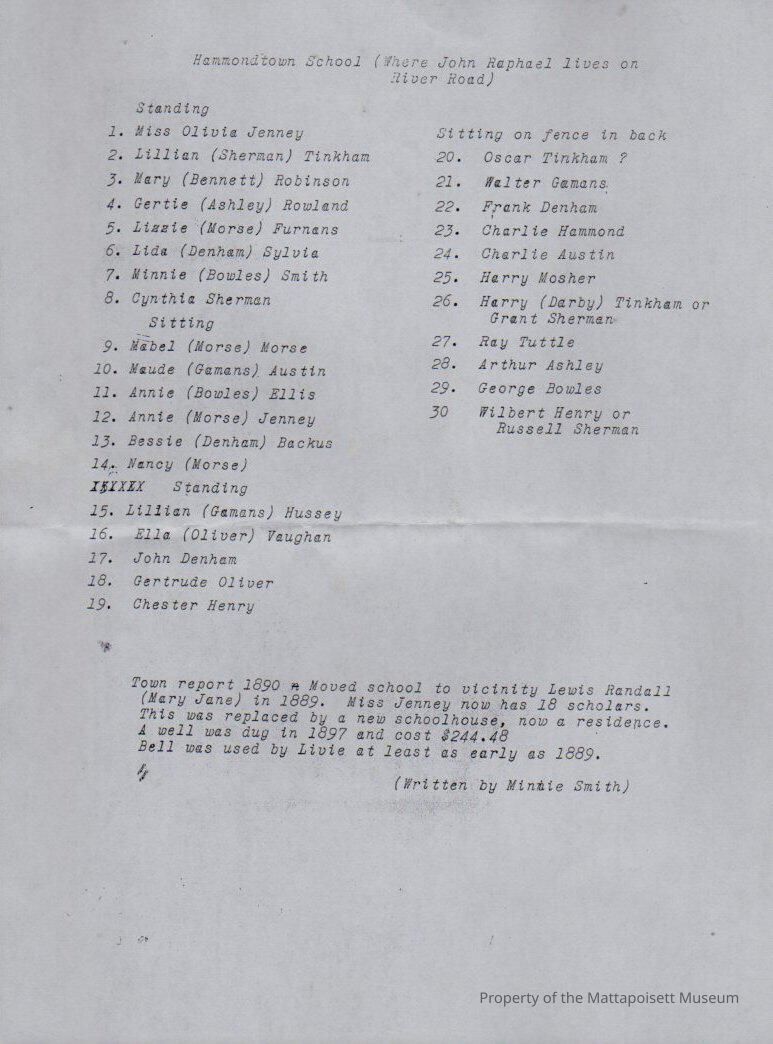 Photo (copy) of Hamondtown School 1895, identified.Collection