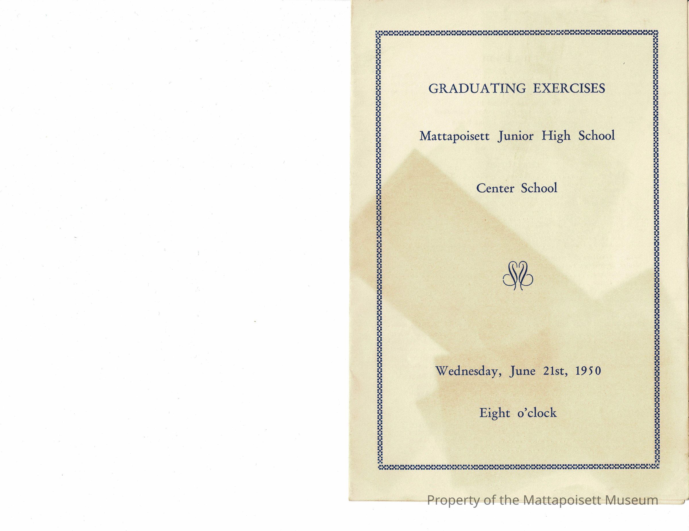 Old Rochester Regional School District "Building Project Celebration" program. Graduating exercises, Mattapoisett Junior High School, Center School, Wednesday, June 21st, 1950.Collection
