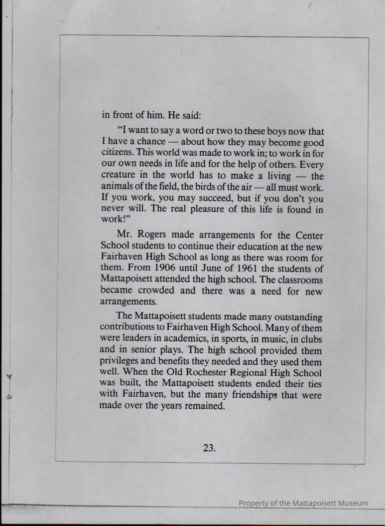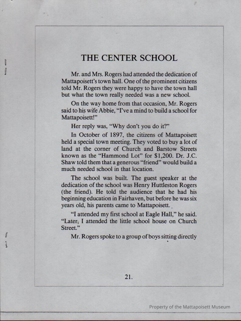 "Seeing it All" by Myra A. Lopes, history of The Center School in Mattapoisett in pictures from 1903 and 1992.Collection