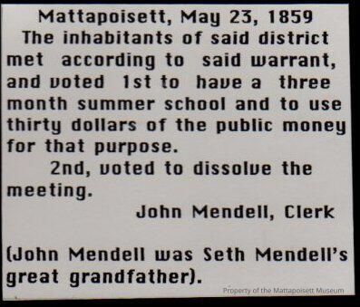 Note that members of school district voted to have a three-month summer school and to use $30 for it. John Mendell (Seth Mendell's great-grandfather).Collection