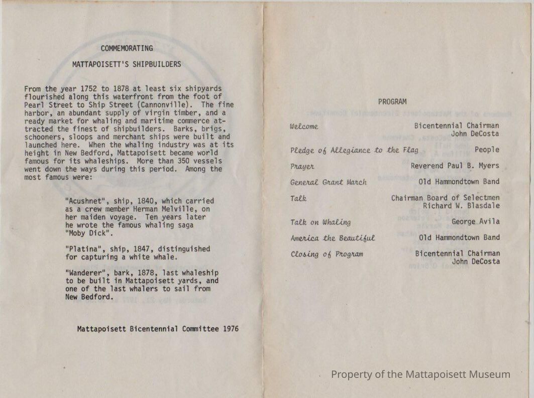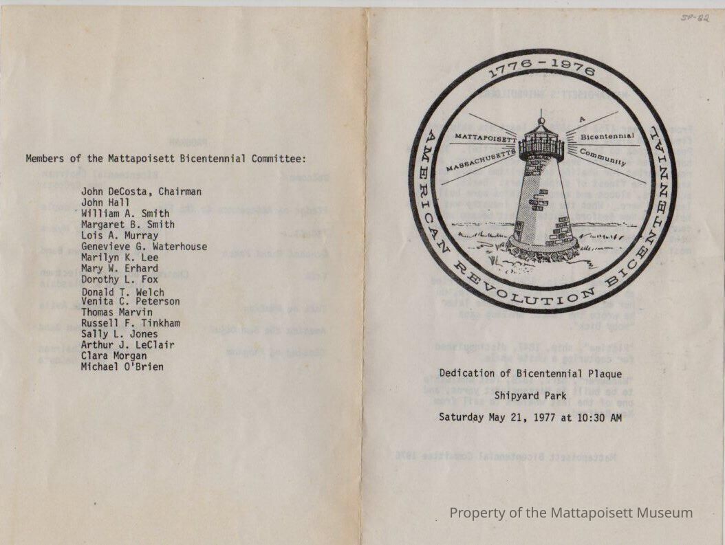 Dedication of Bicentennial Plaque, Shipyard Park. Commemorating Mattapoisett's Shipbuilders description.Collection