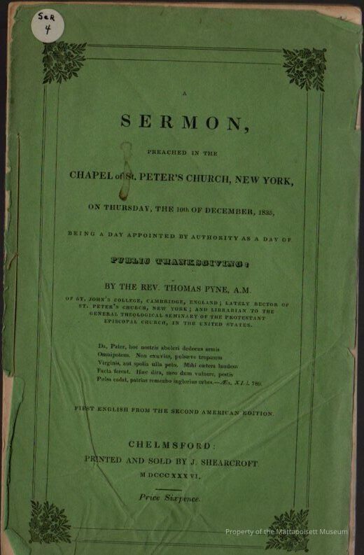 Sermon preached in the Chapel of St. Peter's Church, New York, on a day appointed by authority as a day of Public Thanksgiving, by the Rev. Thomas Pyne, A. M.Collection